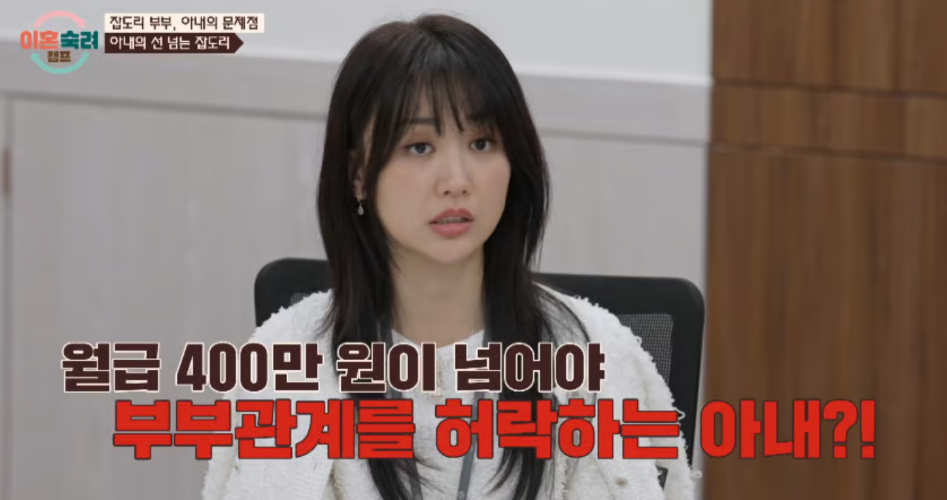 이 과정에서 아내는 더 이상 버티기 힘들었다며 심리극 치료 도중 중도 퇴소를 선언했고, 변호사 상담에서 “이혼 의사 100%”라고 선언했습니다.