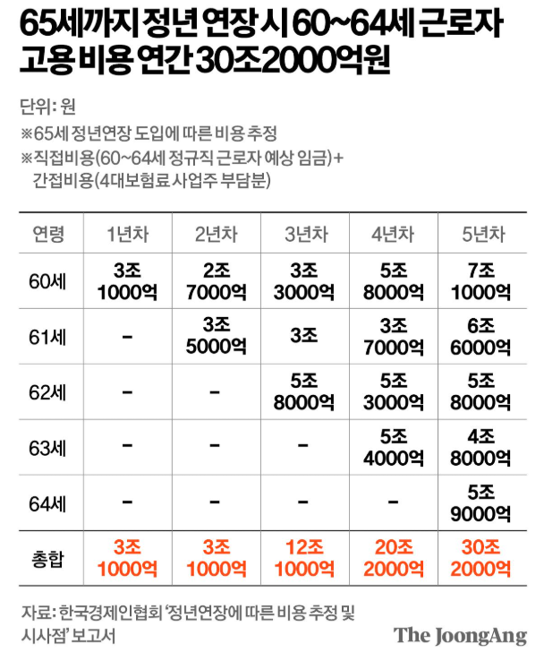반면 기업들은 정년 연장을 강제할 경우 인건비 부담이 크게 증가한다고 주장합니다. 실제로 고령 인력 고용 유지 비용이 연간 수십조 원에 달할 수 있다는 분석도 나옵니다.