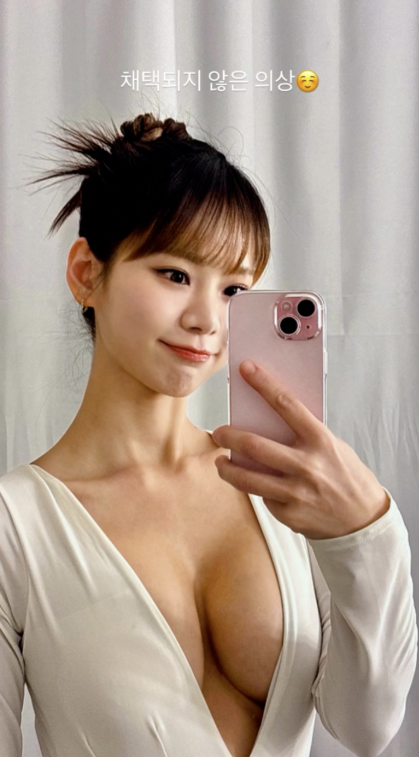 맹승지는 최근 자신의 인스타그램 계정에 “채택되지 않은 의상”이라는 문구와 함께 거울 셀카 한 장을 게시했다.