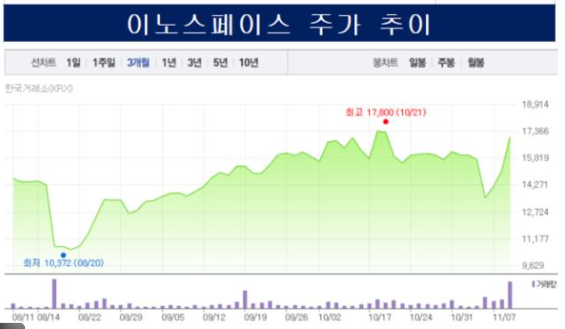 2025년 12월 24일 기준 이노스페이스 주가는 약 10,910원에 거래되며 상장 이후 변동성을 보이고 있습니다.