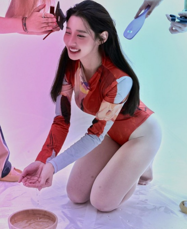 그중 파란색 원피스형 수영복을 입고 포즈를 취한 사진이 많은 주목을 받았는데, 하늘빛 수영복이 그녀의 피부 톤과 어우러지며 청초한 분위기를 자아냈습니다.