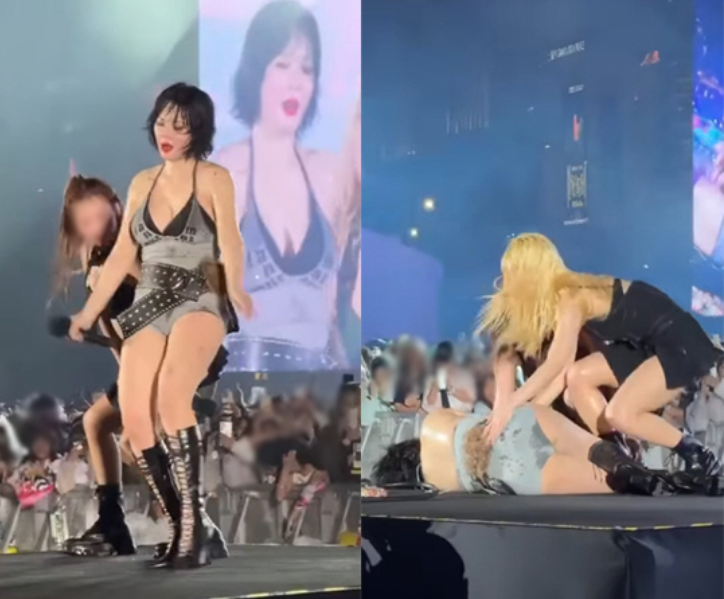 공연 도중 현아는 히트곡 ‘Bubble Pop!’ 무대 진행 중 몸이 흔들리더니 결국 무대 위에서 쓰러졌습니다. 현장 영상에는 춤을 추던 댄서들이 급히 당황하고 보디가드가 무대로 뛰어드는 모습이 담겨 있습니다.