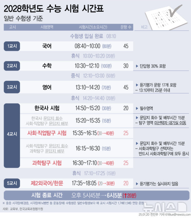 - 4교시 한국사+탐구: 14:50 ~ 16:37 (약 107분) – 탐구 2과목 선택기준 포함