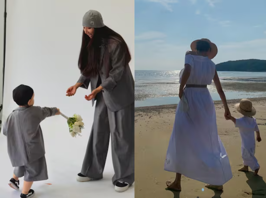이번에 공개된 사진 속 아들은 걸음마를 떼고, 엄마 문가비와 커플룩을 입고 카페·해변·풀밭 등 다양한 공간에서 자연스러운 모습으로 포착됐습니다.