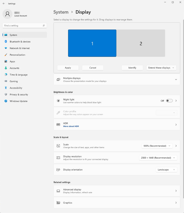 또는 해상도를 ‘권장’ 값으로 재설정하는 것도 도움이 됩니다.