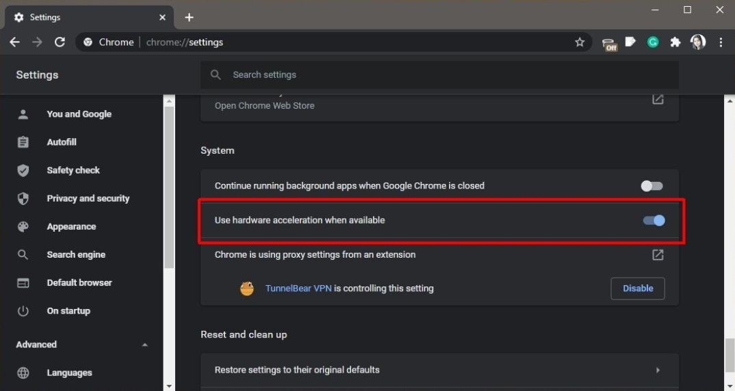 크롬 설정 → 시스템 → ‘가능한 경우 하드웨어 가속 사용’ 해제 후 재시작