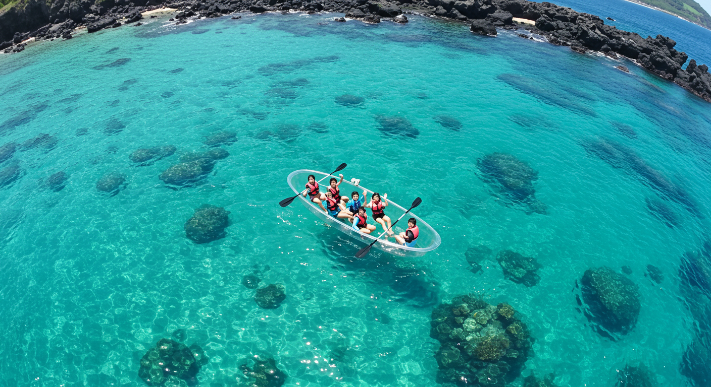 맑은 물 위를 투명한 카약을 타고 떠다니는 느낌, 직접 해보면 ‘와’ 소리가 절로 나옵니다.