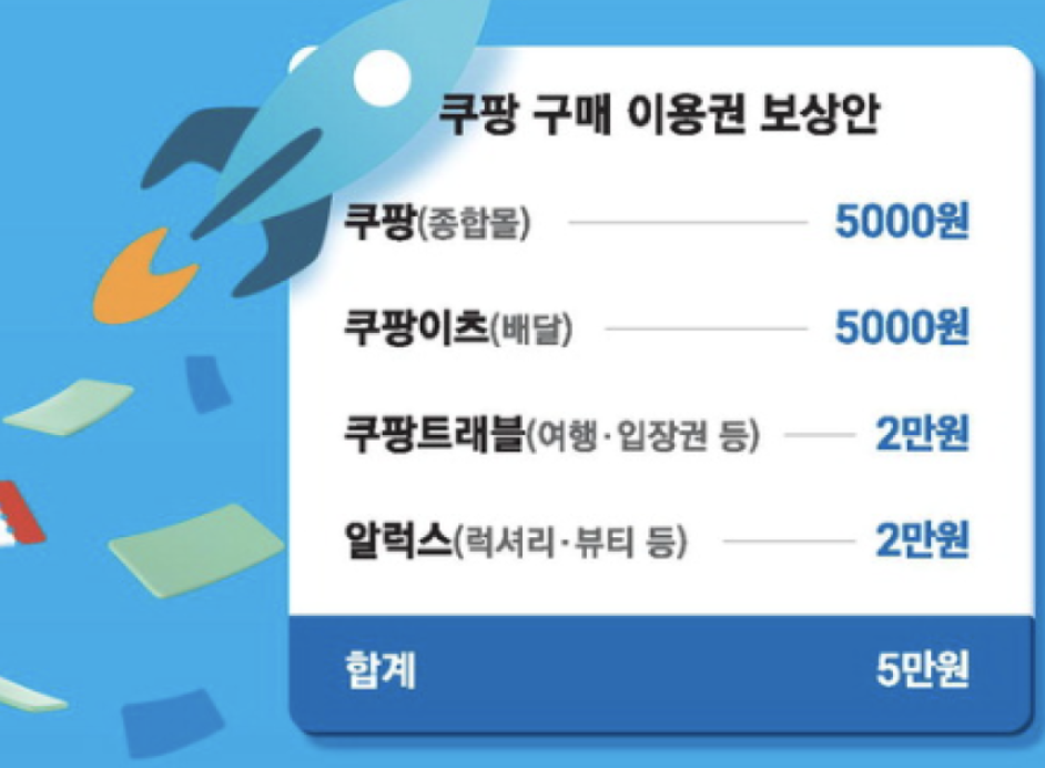 쿠팡 보상권은 개인정보 유출 피해 고객에게 제공되는 구매용 쿠폰 형태의 보상 혜택이다. 현금이 아닌 앱 내 결제 시 사용할 수 있는 쿠폰이며, 총 금액은 50,000원이다. 쿠폰은 쿠팡의 여러 서비스에서 분할 이용 가능한 형태로 지급된다.