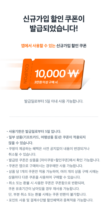 - 쿠폰을 ‘현금처럼’ 되돌려 받는 환급 방식은 아니며, 남은 금액은 환불되지 않는다.