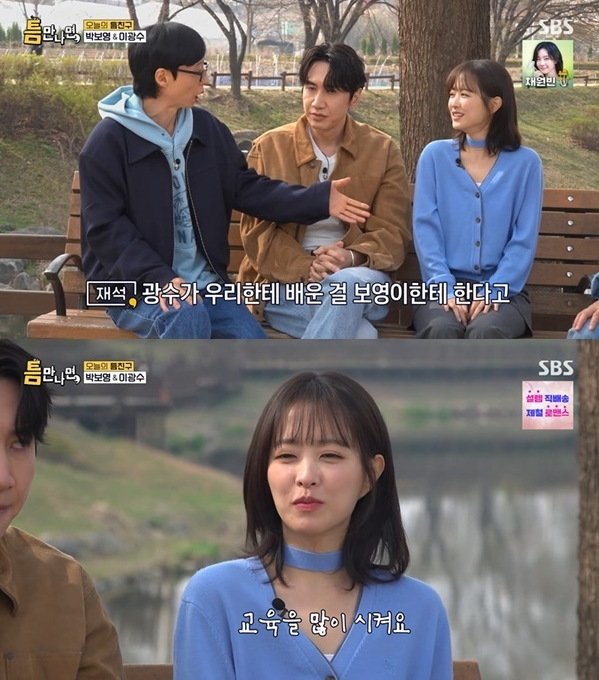 이광수의 이 한 마디에 유재석은 빵 터지며 현장을 웃음바다로 만들었습니다. 오랜 세월 유재석·지석진 등 선배들에게 잡도리를 당해온 이광수가 이제는 본인 후배인 박보영에게 그 방식을 그대로 전수하고 있다는 사실이 유쾌하게 밝혀진 순간이었습니다.