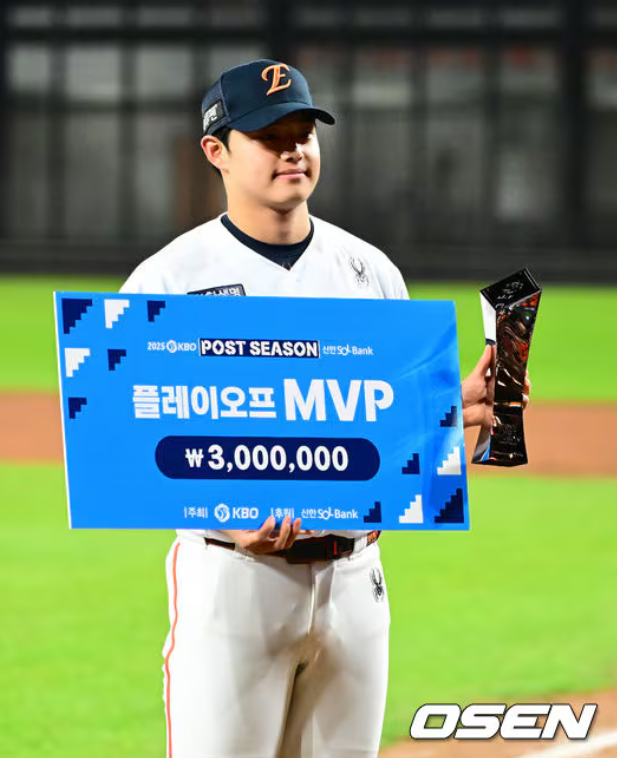 시리즈 내내 안정적인 피칭으로 불펜을 책임진 문동주가 플레이오프 MVP에 선정됐다.