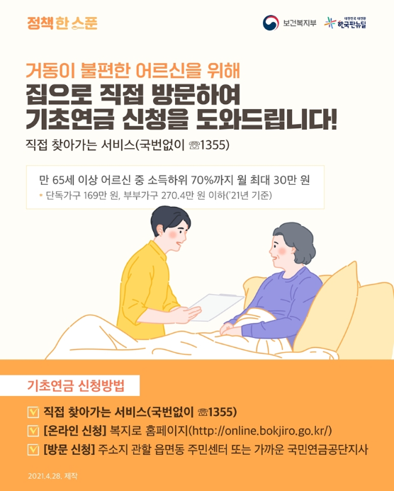 기초연금은 생일이 속한 달의 1개월 전부터 신청이 가능합니다.