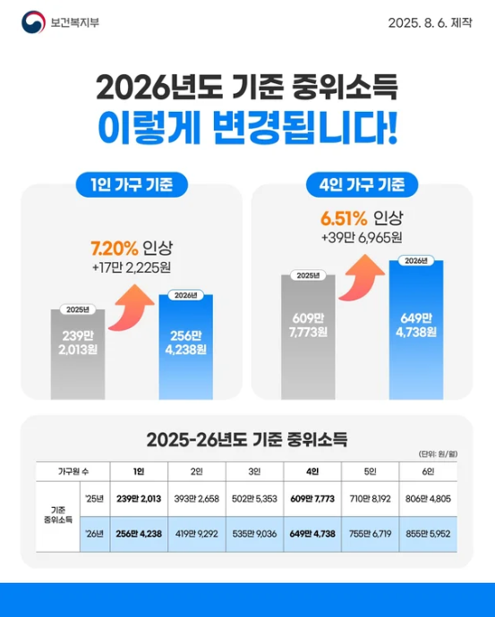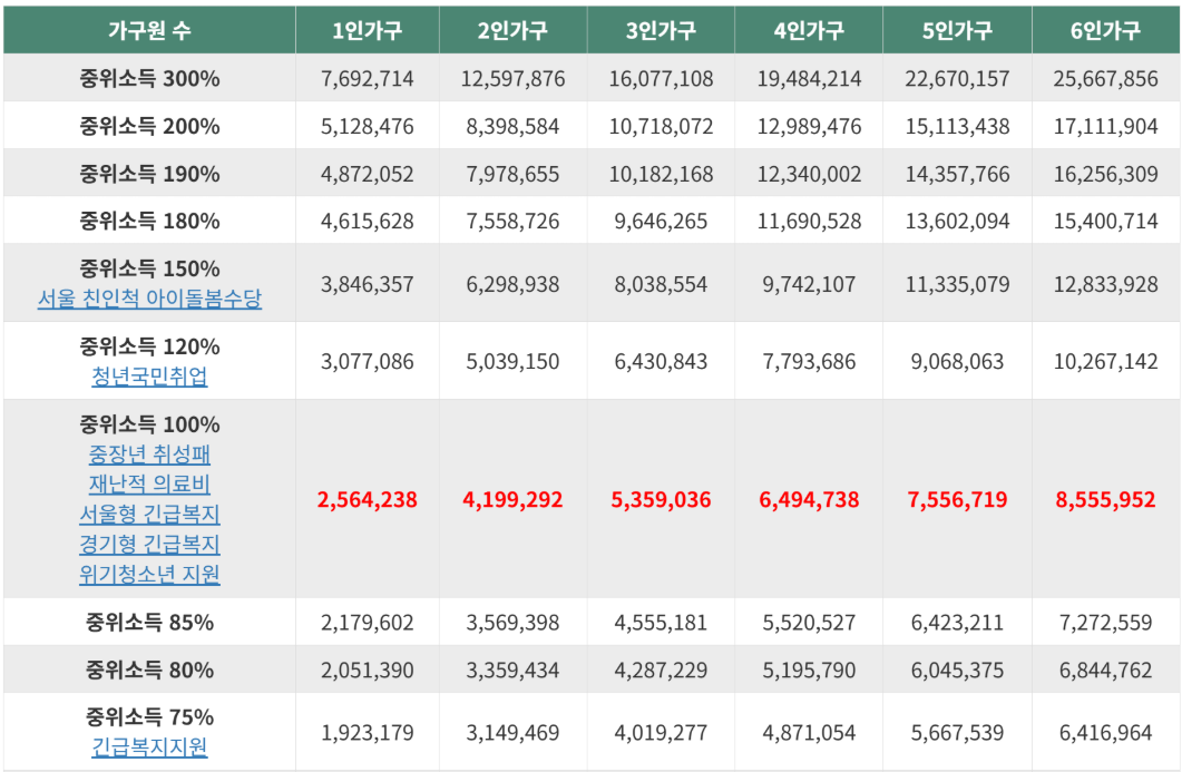 여기서 말하는 중위소득은 보건복지부에서 매년 발표하는 소득 기준을 의미합니다.