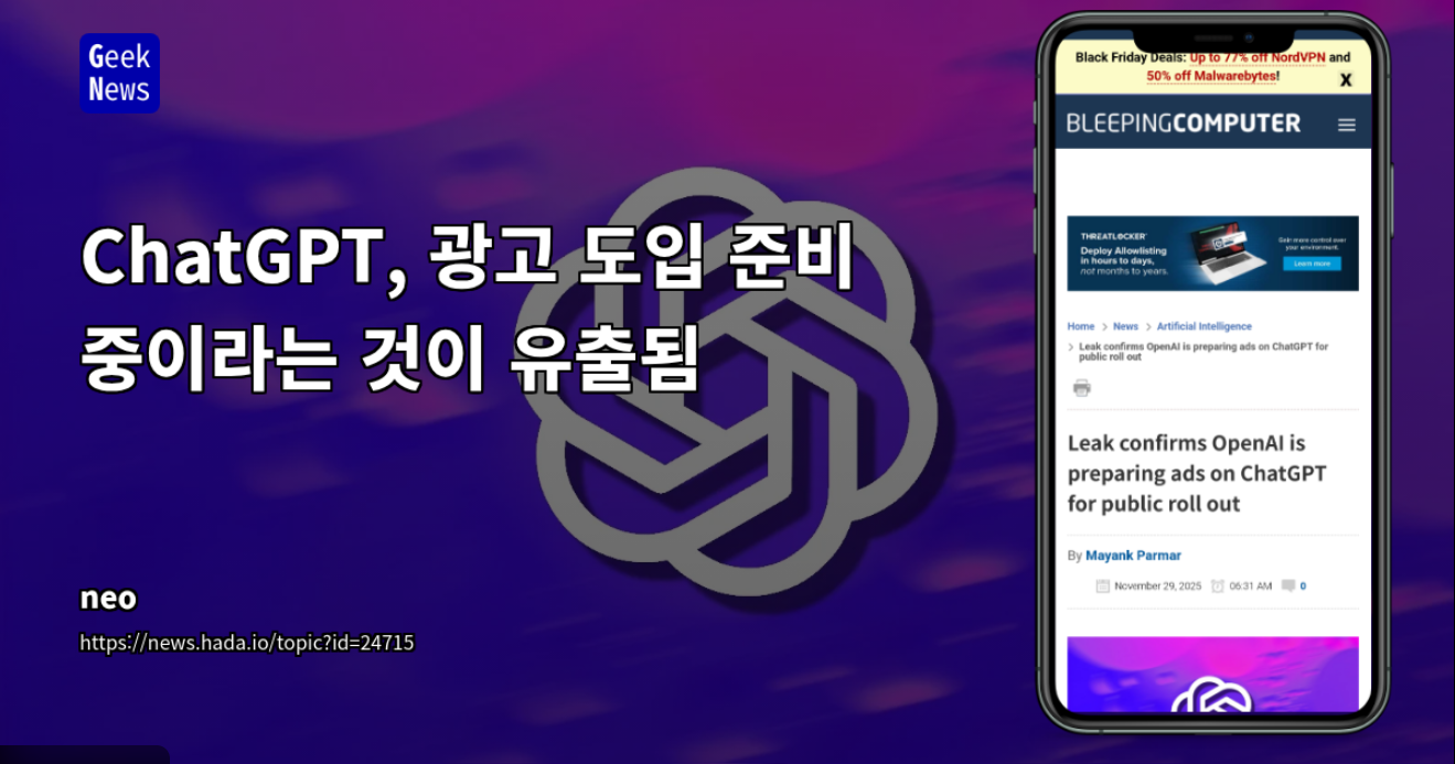오픈AI는 처음으로 미국 사용자들을 대상으로 챗GPT 광고 테스트를 진행합니다. 향후 몇 주 안에 무료 및 저가 플랜(Go) 이용자에게 광고가 표시될 예정이며, 이후 글로벌 적용 확대도 검토되고 있습니다.
